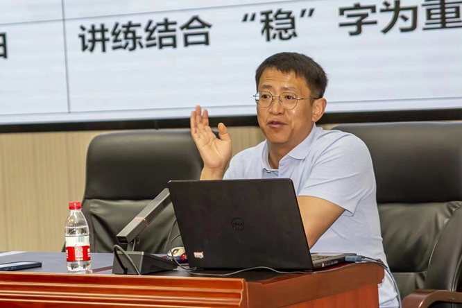 图为石家庄一中高三年级主任李超作《高三备考管理及拔尖创新人才培养实践》专题讲座