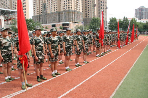 长庆八中以提高学生综合素质为目的,邀请了陕西陆军预备役高射炮兵师训练基地的教官对新升入七年级的新生从8月21日至8月27日进行了为期7天的军训。