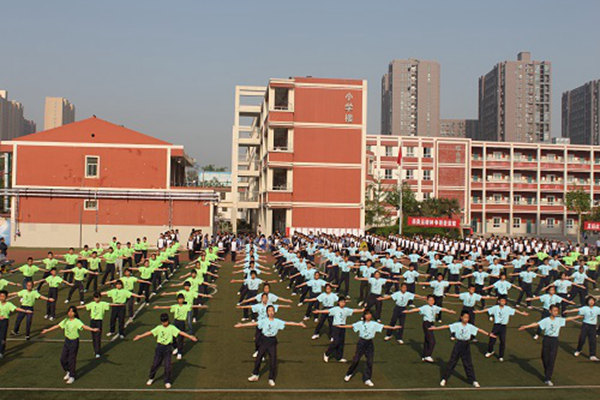 随后1-8年级进行了“舞动中国”—团体健身操队依次精彩表演,展示学校艺术体育活动取得的丰硕成果,赢得了现场观众阵阵热烈的掌声。舞动中国团体健身操是该校新训练推广的一套团体健身操,该健身操旋律欢快,节奏感强,适合中小学生表演。