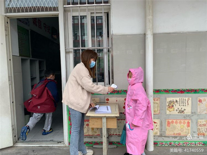 图为进班前二次测温