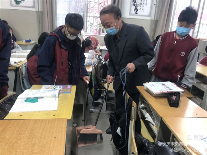 图为劳动实践师生共同清扫卫生