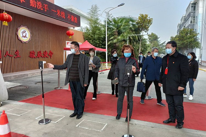 图为督察组一行进行测温进校检查