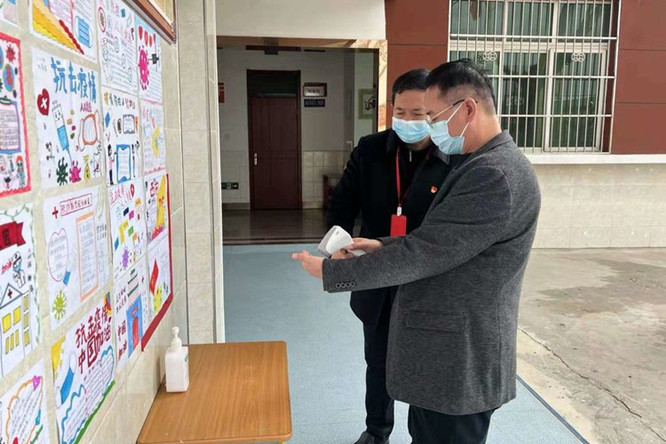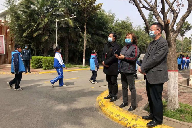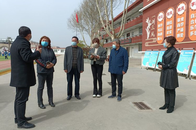 在学校大门口,检查组一行查看了测温设施,对复课时学生入校的方案和措施进行了详细的询问,了解日常学生测温情况,对学校门口的红外线测温和电子测温相结合的测温方式给予充分的肯定。