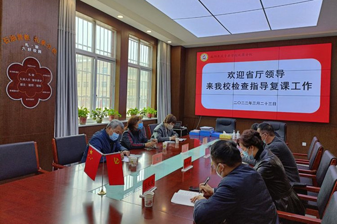 2022年3月23日上午,委厅机关及直属中小学工作组、石油普教中心领导一行七人莅临礼泉分校督导检查并指导学校疫情防控及复课的各项工作,学校领导陪同检查。