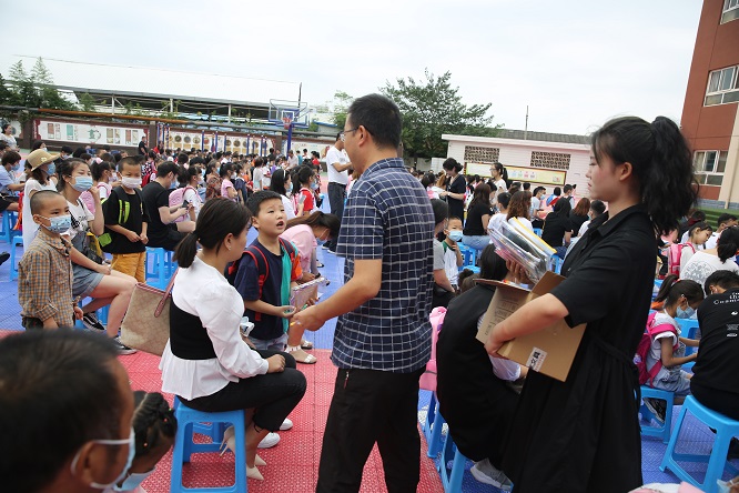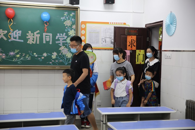 最后,家长和孩子们在班主任的带领下有序跨过求知门,排队走进精心布置的教室,开启了美好的校园生活。