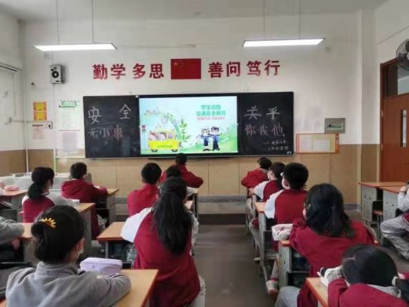四、组织一次交通安全主题班会。学校以“我身边的交通安全风险”为话题,组织主题班会,让学生就校园(家)周边、上(放)学途中等交通安全风险展开讨论,用身边人、身边事引导学生正确认识道路交通安全环境,辨识交通安全风险,增强风险防范意识,提升避险能力。