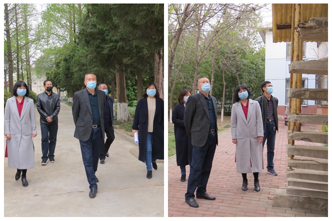 图为油田公司领导与石油普教中心副主任朱克强视察教师公寓落成情况