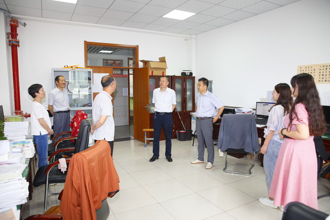 图为中心党委书记、主任王智兴在学校领导陪同下走访六年级和九年级办公室,看望老师,和老师们亲切交谈