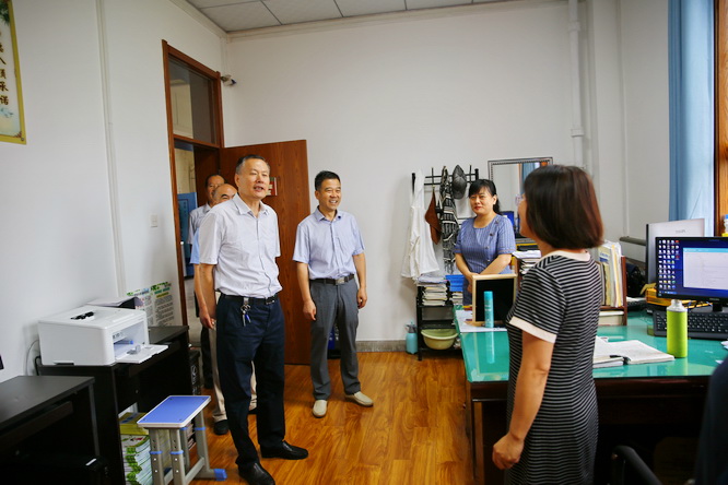 在查看中,他还深入六年级和九年级教师办公室看望老师,了解老师生活工作情况,勉励大家要为明年中考质量提升努力工作。