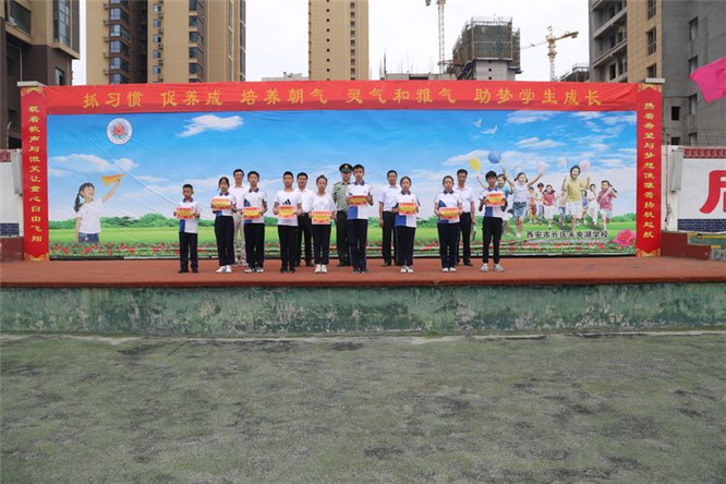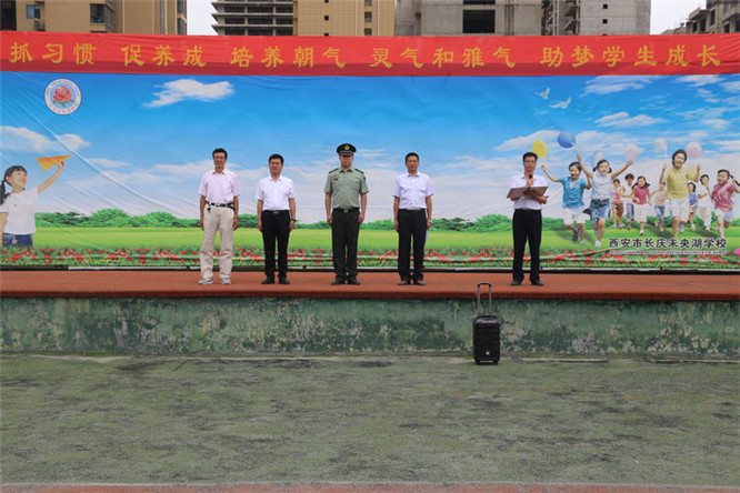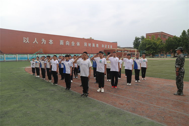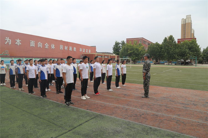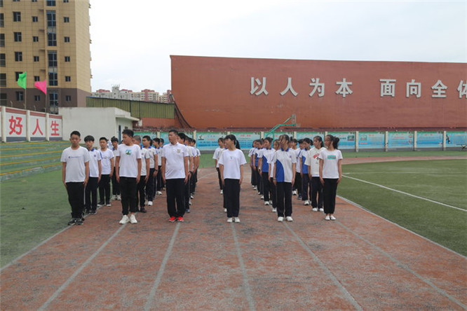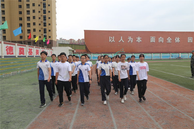 会后在操场举行了七年级新生军训汇报表演。德育处许银社宣布汇报开始。同学们以班级为单位,在教官的指挥下,表演了稍息、立正、停止间转法、跨立、立正、敬礼、齐步走、跑步等动作,向学校领导和全校教师展示了自己经过军事训练后的骄人成绩。队列表演整齐划一,举手投足虎虎生风,精彩的表演赢得在场领导和老师们的一致好评,也展示了我校七年级新生良好的形象和精神风貌,汇报表演结束后,学校对军训中表现突出的学生进行了表彰,对承训教官们表达了由衷的感谢。通过军训,提高了新生的身体素质,锻炼了意志品质,也增强了组织纪律性。