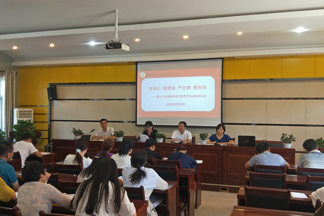 为落实中心党委《关于开展第三个纪律教育学习宣传月活动的通知》精神,礼泉分校党支部经过支委会讨论,制定活动方案,于9月7日下午举行了以“守初心、践使命、严纪律、勇担当”为主题的纪律教育学习宣传月活动启动仪式,全体教职工参加了活动。