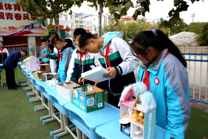 此次活动同学们踊跃报名参赛,各展所能,精心制作了一件件别具匠心、令人赞不绝口的手工艺品。各种废旧纸张、超轻黏土、谷物等综合性材料在倪阳老师的指导下学生们精心打造,完成了一件件令人赞叹不绝的“建筑物”作品。截止10月26日下午4:00,共收到该年级各班初评选上来的60件作品,并邀请校领导、教师代表在该校羽毛球场进行投票评选。 评委老师从作品的艺术性、观赏性、实用性、以及创意性、环保性等方面对参赛作品进行现场打分。每一件作品都能体现出学生们出色的动手能力和充满梦想与智慧的心灵,评委要选出自己最中意的作品,还是花一番心思斟酌取舍。