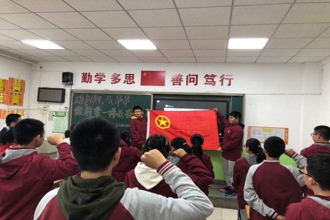 观看过程中,同学们聚精会神,若有所思,深深地被记录片中的内容所震撼。当志愿军连夜奔袭取得胜利时,他们自发鼓掌欢呼;志愿军英勇抵抗,舍生忘死的精神让他们握紧了拳头;当烈士遗体被送回国时他们默默地流下了眼泪;珍爱和平,守护正义,团员们面对团旗,郑重宣誓……