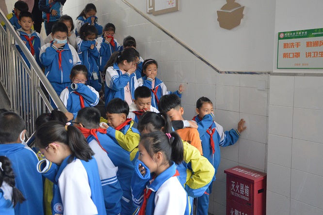 3.开展消防安全应急演练活动。11月9日上午,利用大课间时间举行了消防应急疏散演练活动。演练指挥小组成员和各岗位负责人,全部到达指定位置,各负其责。全校师生听到警报声后,按划分的疏散路线,迅速、有序、安全地从教室、办公室疏散到安全疏散区,整个演练过程用时不到两分钟。随后,副校长田宁苏总结了演练活动,并对全校师生做消防安全教育。此次疏散演练活动,增强了全校师生的消防安全防范意识,提升了师生应急逃生自救能力。