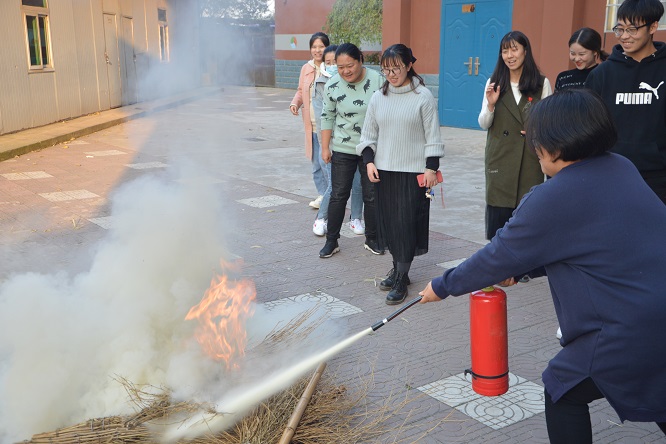 4.组织青年教师进行灭火演练。11月9日下午,学校年轻教师到达指定位置,参加了灭火演练。青年教师踊跃参与,态度认真,操作规范。通过灭火演练,青年教师身临其境地体验了火的威力,也掌握了灭火器的正确使用方法。