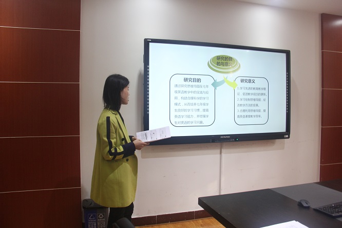 图为课题《思维导图在七年级英语教学中的实践与应用》主持人进行汇报