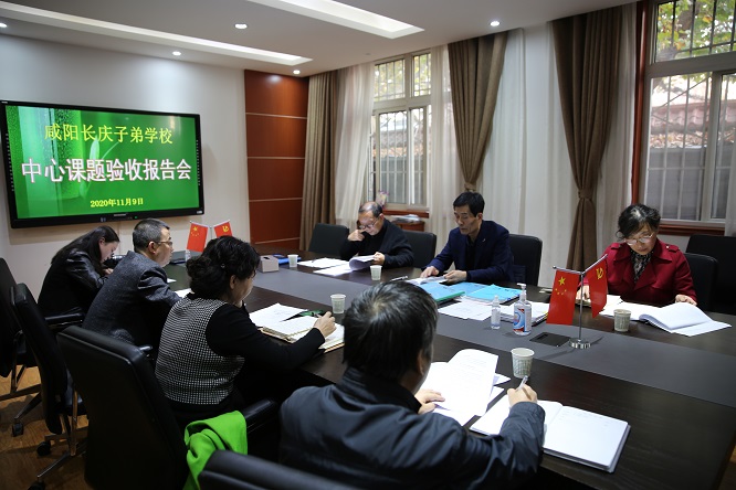 2020年11月9日下午,中心教学管理部、教学指导室主任何胆孝一行三人到咸阳长庆子弟学校对课题《思维导图在七年级英语教学中的实践与应用》和《自主课堂下初中物理概念教学情境创设的实践研究》进行结题评审与验收。校长张焱红、副校长李怀斌、教务主任隋弢、教研主任段锐琦,课题组成员及全体教研组长参加了此次评审活动。