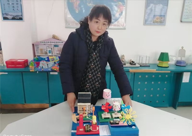 马老师的作品《能量小魔仙》,巧妙地化解了科学课《神奇的能量》单元中的教学难点,激起了学生学习科学课的兴趣,很好地引领学生探究新能源的开发与利用。此教具成功地演示了生活中各种能量的工作形式,通过教具演示引导学生识别、分析、描述生活中各种能量的作用,让学生明白了各种能量之间是可以互相转换的。马老师在教学中是一个非常有心的人。她结合课程标准要求及学生认知规律,巧妙利用废旧物品、手工制作材料和生活中的自然资源充分发挥想象,制作出实用、方便的教具,提高了小学科学实验教学的直观性和可操作性。
