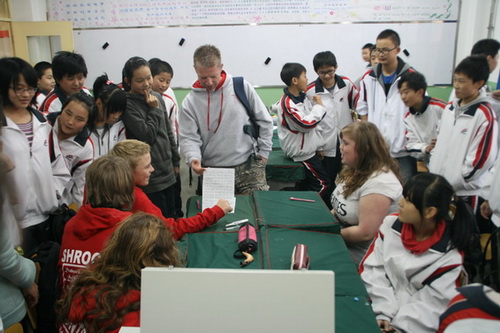 整个活动,学生们参与面广,兴趣浓厚,尤其是8月25日英语组组织的八年级和英国中学生进行的面对面交流互动活动,吸引了全校学生的眼球,学生们兴致盎然,谈兴很浓,分别就家庭生活、学校生活等自己感兴趣的话题互相展开交谈和学习。