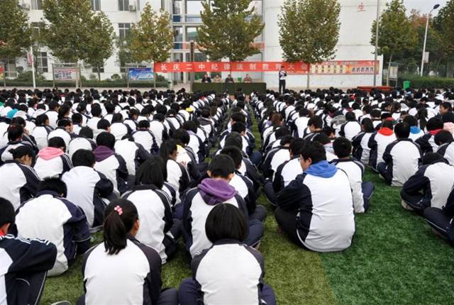 2011年10月31日下午,长庆二中召开了学生法制纪律教育大会。学校领导、全校学生共1200多人参加了大会。会议由马兆来副校长主持,德育处黄建军主任为全体师生做了法制纪律教育报告。