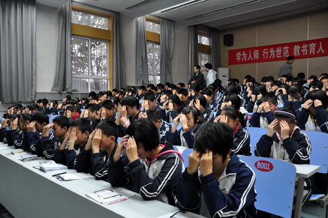 11月1日下午,长庆二中举办了以“关爱眼睛,快乐学习,健康成长”为主题的眼保健操培训班活动,该校各班文体委员、部分学生代表共200余人参加了本次培训活动。
