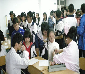 咸阳长庆子弟学校于2011年11月4至7日,请省水电医院医护人员对全校近千名中小学生进行了一年一度的体格检查。