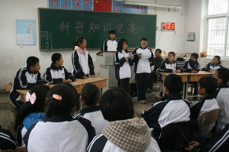 科普组织抢答赛在初中段举行,全部由学生策划、组织,由八年级的两名学生担任主持。首先,主持人宣读答题规则,紧接着进行了科普知识抢答题、必答题、加试题。六个代表队你争我抢,抢答器的鸣叫声响个不停,选手争先恐后,台下掌声热烈,不时有同学提问、补充,给抢答赛增添了新的亮点,经过三轮答题,八二班以微弱的优势获胜。比赛已经结束了,但同学们还意犹未尽,依然沉浸在欢快的气氛里,久久不愿离去。