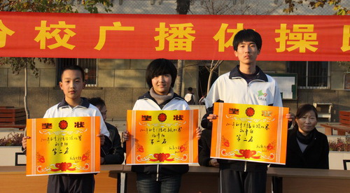 比赛分三个组,小学低段组,小学高段组,初中组,和一年级表演组,各年级段除了展示《希望风帆》,《舞动青春》音乐伴奏的第九套广播体操之外,还展示了队列队形表演。比赛采取现场打分和现场评奖制度,小学低段第一名是三年级1班,第二名是三年级2班,小学高段第一名是六年级1班,第二名是五年级1班、六年级2班,初中段第一名是九年级1班,第二名是七年级2班、九年级2班。
