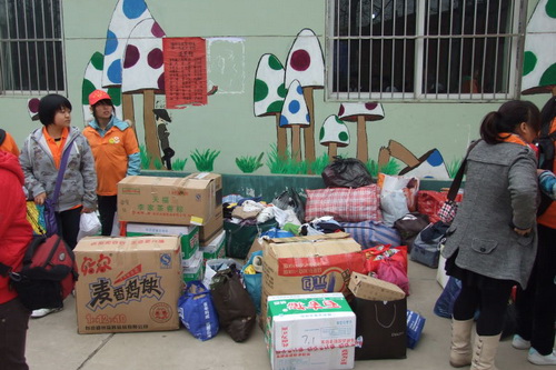 在德育处的大力支持下,学校第一党支部、高二年级组和高二年级各团支部以“温暖2011,我们在行动”为主题,联合开展爱心捐助活动。本次活动首先由高二年级各团支部发出倡议,全年级师生积极响应踊跃捐助,仅仅几天时间,共捐衣物375件,另外还有围巾手套、棉鞋、学习文具及书籍等物品。为了让儿童村的孩子们及早拿到过冬的衣物,年级组老师加班加点进行分类装箱。