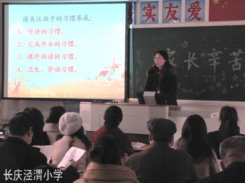 为了加强学校与家庭的沟通与联系,架起学校教育与家庭教育之间的桥梁,达到家校携手共同培养孩子的目标,有效地促进学校各项工作安全、平稳、有序地发展,2011年11月30下午,长庆泾渭小学隆重召开“期中考试总结暨全体学生家长会”。