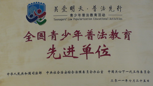 长庆八中在中国关心下一代工作委员会、中华人民共和国司法部和中央社会治安综合治理委员会办公室联合主办的“关爱明天、普法先行” 青少年普法教育活动中荣获“全国青少年普法教育先进单位”。