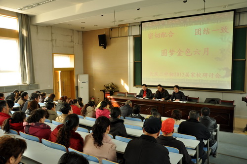 初三,是初中学段出成果的一年,学生学习任务重,压力大,社会关注度高。为了促进家庭与学校之间的沟通与交流,增强家庭教育与学校教育的针对性,做到有的放矢,能形成合力,借力共赢的目的,2011年12月26日长庆二中在该校多功能厅隆重召开了初三年级学生家校教育研讨会,学校主要领导到会并做了重要讲话。