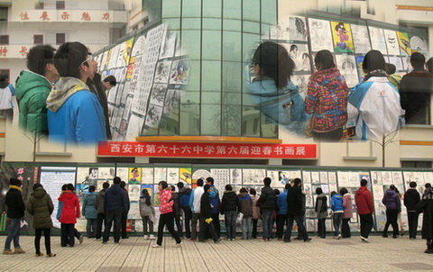 在音乐会举办的同时,六十六中第六届迎春书画展也如期举行,全校共200余幅书法、绘画作品参加了展出。这些作品内容健康,积极向上,有不少作品还具有较高的艺术水平,此次书法绘画展参展作品得到了全校师生的高度评价。