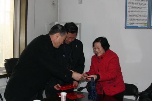 王智兴主任一行在泾河退管站集中看望慰问了苏秀兰等8名退休同志,王主任在一一询问了解了每位老同志的家庭、生活情况后,为他们能正确面对生活中存在的困难、积极乐观生活的态度而感动,并表示中心会尽最大的努力关心帮助生活困难的家庭,同时也希望每位同志能理解中心目前存在的困难,继续支持中心的工作。在向各位老同志发放了慰问金后,王主任预祝每位老同志春节愉快,阖家幸福,健康长寿!