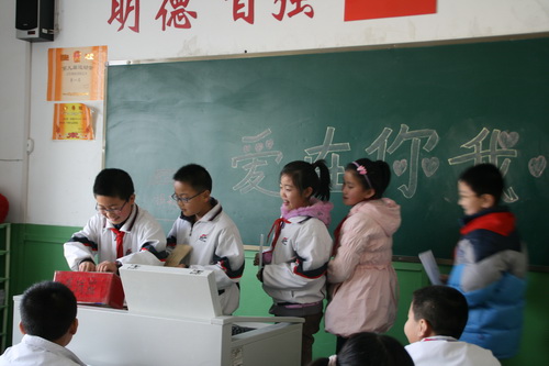 2月8日,在长庆八中五年级一班的教室里一场为李昊泽同学的爱心募捐活动悄然进行。黑板上“爱在你我心中”几个大字醒目、庄重,走廊上《爱的奉献》歌曲回旋飘荡,同学们一个个神情严肃、手捧信封有秩序的把自己的爱心投进了爱心信箱。