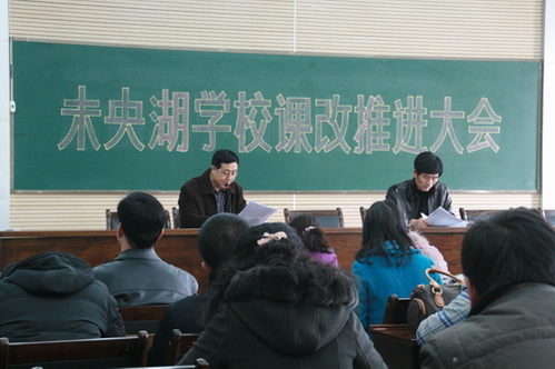 2月17日下午,长庆未央湖学校召开了以“改变学习方式、构建活力课堂”为主题的课堂教学改革推进会,解读了《石油普教中心2012年课堂教学改革推进办法》,宣布学校课改推进办法及小学课改思路。会议由校长何胆孝主持,全体教师参加了大会。
