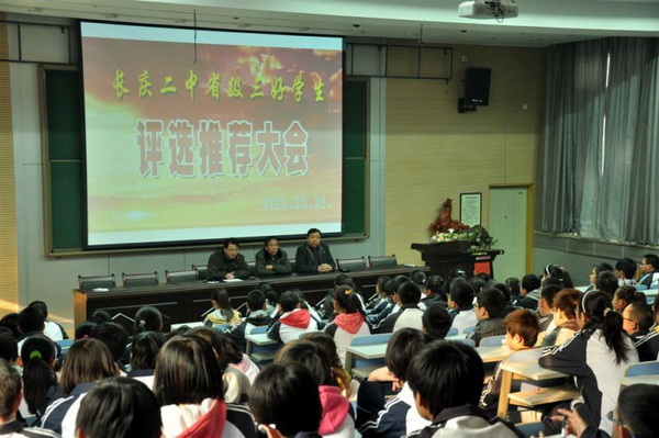 2012年2月21日下午,长庆二中召开了陕西省省级“三好学生”评选暨推荐大会,该校210名学生代表参加了这次大会,并代表全校学生投下了庄严神圣的一票。