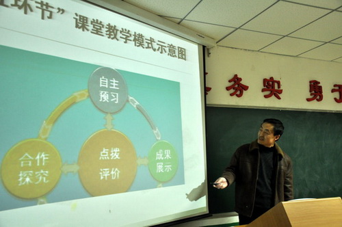 学校教研室负责人传达了中心课堂教学改革推进工作会议精神,从七个方面解读了中心《2012年课堂教学改革推进方案》的主要内容,使全体与会人员进一步明确了中心课改的基本思路、目标任务和工作措施,并结合实际,对该校提出的“五环节”课堂教学模式做了说明,就如何落实提出了具体要求;李正会、孙建国副校长等三位专项工作负责人,孙世骞、万永梅等六名年级组、学科组负责人,对所负责的工作从思路、方法、步骤、措施等方面在大会上做了交流表态发言,处处体现了狠抓工作落实的基本思想和完成工作任务的坚定决心