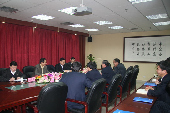 石油普教管理中心主任、党委书记王智兴(前排左二)汇报工作