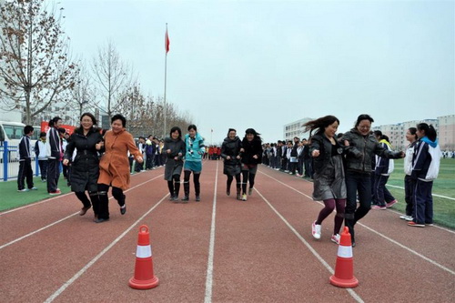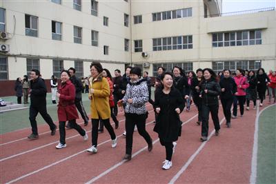 这次活动包括:跑步、跳健身操、“同心协力”体育游戏等,既有个人项目又有集体项目,体现了竞技性与趣味性的完美结合。全体女教师踊跃参与,并乐在其中,全体男教职工们呐喊助威,为节日献庆助兴,整个校园笼罩着浓郁的节日气氛。