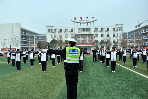 为了提高学生的交通安全意识,增强对道路交通安全法律、法规的认识,做到知法、懂法、守法,养成崇尚现代交通文明,自觉遵守交通规则的良好习惯,2012年3月8日下午,长庆二中开展了以“关爱生命、文明出行”为主题的学生交通安全教育活动。特邀高陵县泾河交警中队民警到场对学生进行“交通法律法规常识、道路交通标线、交通指挥手势信号”等内容的教育培训,并现场向学生发放了《交通安全读本》。