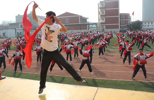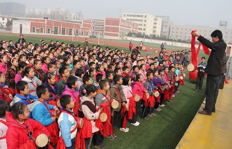 西安泾河中心学校结合本校实际确立了“腰鼓”为学校体育特色项目,并希望通过此项活动能让孩子们在鼓声中传承民族精神文化,丰富孩子的课余生活,陶冶他们的情操;在鼓声中不断鼓舞、激励师生形成团结奋进、昂扬向上的团队精神;在鼓声中实现“打鼓、养德、增智、健体”的活动目标。
