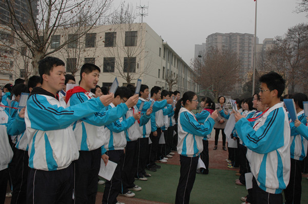上午7点,调研组人员首先观摩了高一年级开展的“疯狂英语”晨读活动,并在高一(1)班观摩了历史课堂教学情况。随后,组织召开了有学校领导、教学主管部门、课改年级任课教师等30多人参加的座谈会。