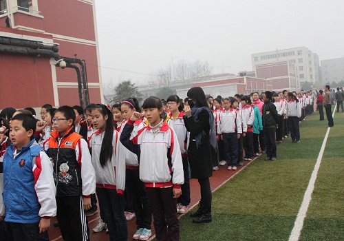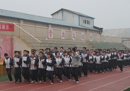 一是力度:整个跑步过程,每班六路纵队,体育委员带操,班主任跟操,学校领导、教务处、值周人员密切关注跑步时队形的质量。力度不仅体现在组织管理上,而且体现在学生跑步时脚步的掷地有力上,每一班经过时,会感觉到地面强烈震动的效果。
