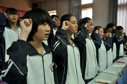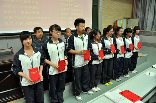 庆祝大会在庄严嘹亮的国歌声中拉开帷幕,该校团委负责人宣读了《共青团长庆二中委员会关于发展新团员的决定》,老团员为新入团的同学佩戴了团徽、通过讲述自己的成长经历表达了对新入团同学的祝贺,新团员代表向全体与会人员作了表态发言。马兆来副校长宣读了《共青团长庆二中委员会关于表彰2011—2012学年度先进团支部、优秀团员、团干的决定》,3个团支部、12名团员、9名团干因表现突出受到了表彰奖励。