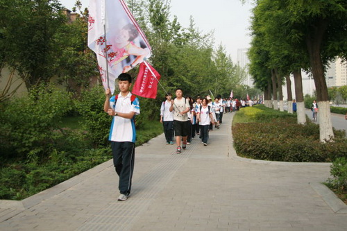 5月6日,在“无限极2012世界行走日”活动期间,西安市第六十六中学举行远足拉练活动。本次活动以“走进自然、认识自我、提升素质、追求卓越”为主题,高二年级全体师生参加了活动。