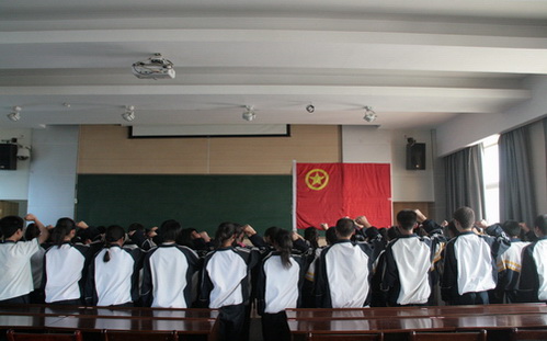 入团仪式上,面对鲜艳的共青团团旗,该校36名新团员们庄严地举起右手,郑重地进行宣誓。八年级关文扬同学代表所有新团员进行了发言,并承诺:入团以后要时刻以一个共青团员的标准严格要求自己,以优异的成绩来回报家庭、学校和社会。九年级安静怡同学代表所有老团员表达了她们的心声,在欢迎所有新团员加入共青团这个组织的同时,也希望新老团员共同努力,把自己的力量、自己的爱心献给团组织。最后,该校党支部书记李永辉代表党组织对新团员表示祝贺,并对他们提出了殷切的希望和要求,希望全校新老团员们团结一致、奋力拼搏,在学生中起好模范带头作用,努力把自己培养成为党和国家未来合格的建设者和接班人。