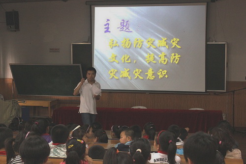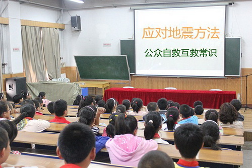 安全宣传活动,由德育处统一组织,在阶梯教室举行。德育处副主任黄甲首先就关于2012年防灾减灾日主题宣传周的重要意义、活动主题、活动开展方式作了说明。其次播放了关于地震安全自救的教育视频,内容包括在家庭、学校、公共场所的自救方法。最后要求同学们相互交流心得体会。