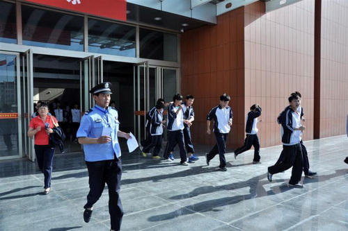 下午5点,随着长庆二中首届班主任节庆典仪式在长庆泾渭体育馆落幕,馆内警报骤然响起,与会学生在班主任老师、社区保安的引导下,立即沿安全通道迅速离开会场,撤离到馆外指定安全地带。由于事先准备充分、组织严密,整个演练过程快速、有序,870名学生和140名教师、工作人员在2分钟内全部安全疏散至安全地带。集合后,泾欣园物业处周义刚处长和长庆二中罗润子校长分别对演练活动作了总结讲话,演练活动圆满成功。