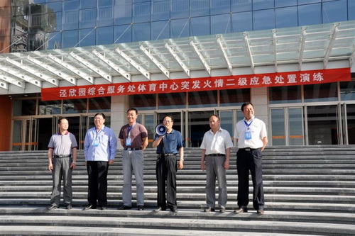 5月12日,该校主管领导参加了长庆泾欣园物业处召开的安全专题会议,决定校企联手开展一次大型场馆紧急疏散演练活动,随后共同研究制订了详尽可行的紧急疏散方案,明确责任、分工,严密布置了演练工作。强调要严格遵守演练程序,迅速、安全疏散,尤其要注意楼梯口和拐角处的安全,严防因地面光滑、人员拥挤而造成踩踏事故发生。